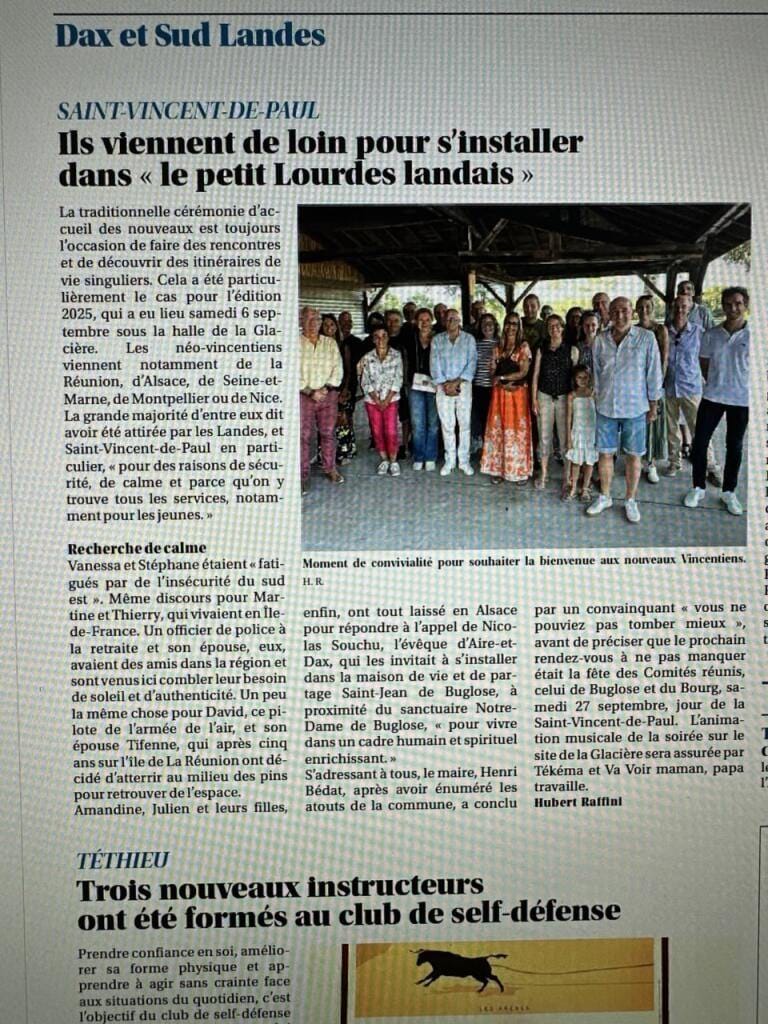 Article paru dans le journal Sud-Ouest, septembre 2025